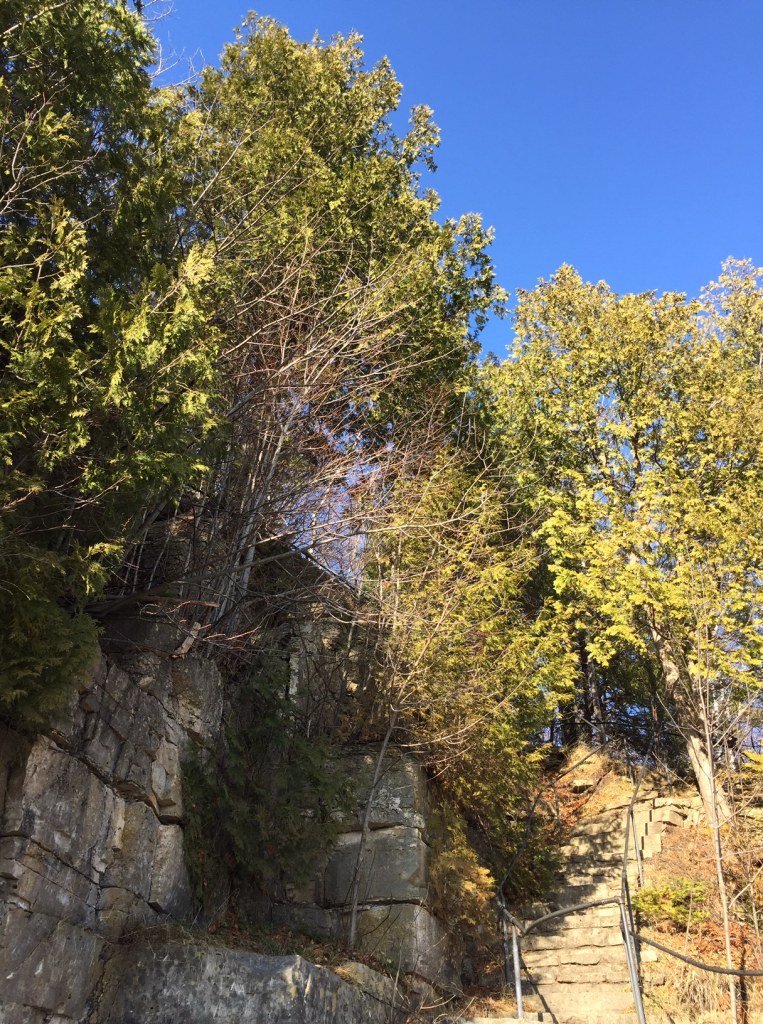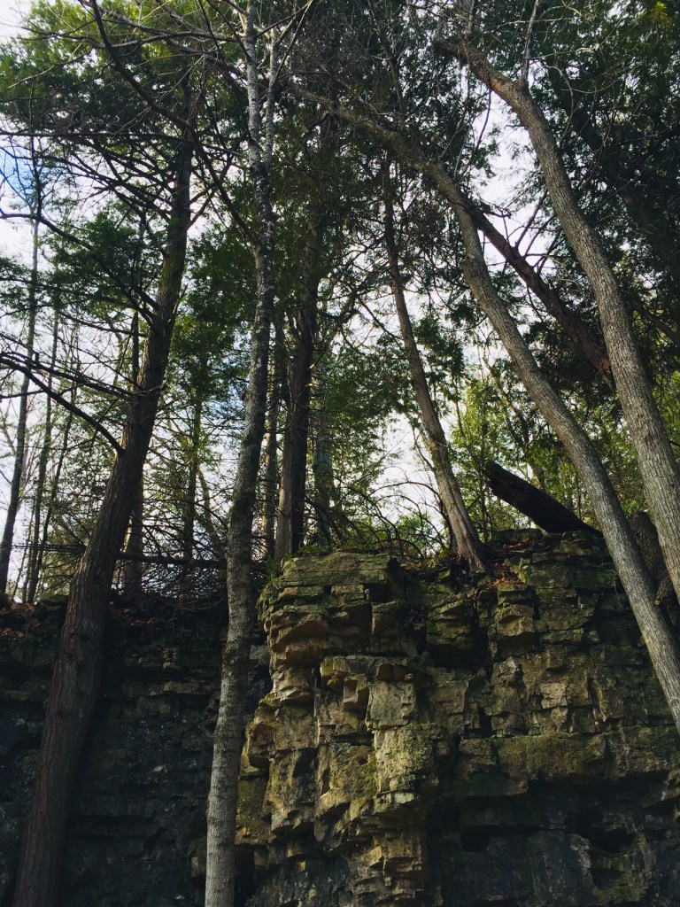 Near the top of the staircase, is a path leading north and down the bluff. The sign at the top warns this is a difficult trail, and it is for most people. I am a seasoned hiker and realized halfway down that I’d have to climb back up to the top. I let go my fear and began the hike. It was one of my favorite hikes of all time. Not simply because it was a fairly difficult hike, but because I found the trail while I am still young and healthy enough to feel confident in my choice. Most of the trail is not difficult, but there are places where I felt I needed something to hold on to while maneuvering through the rock faces. But then after I passed through I looked back and felt strong. And I also saw beauty that I wouldn’t have know I’d missed!