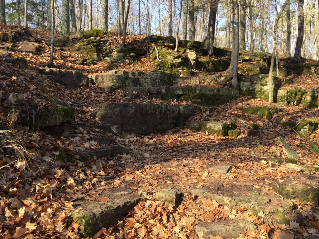 And so I began the trek back up the bluff, came across no other hikers, which is good because the trail is thin in many places and there is little room to move aside. I can say that it is a good physical hike both ways, and according to my phones trail app, I burned a lot of calories, but it felt easier to me to climb up than to hike down. Possibly because it is easier to see footholds in the rocks, but I prefer to think that it is from the good energy I received from the forest. The forests give us so much in return for so little.