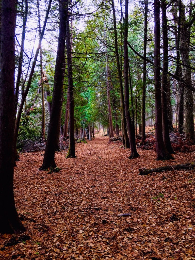 At the bottom I stood a while to listen to the bay waters gently rolling on to the shore. Then I walked further north along the shoreline, following a deer path left shortly before I got there. I was hoping to get a glimpse of their majestic souls but the path was blocked by a fallen tree so I had to be happy with the knowledge that they were there somewhere, probably watching me.