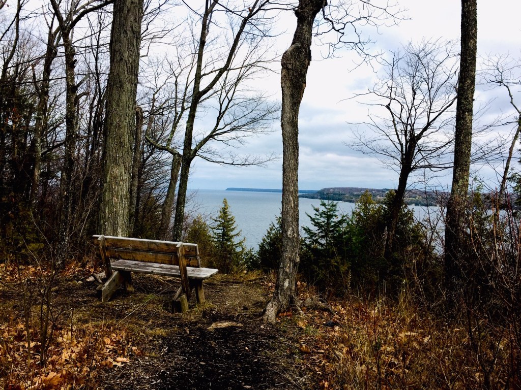 It is one of the largest parks in the state of Wisconsin, loaded with trees and settled on and below a bluff that is a part of the Niagara Escarpment. The park has some of the loveliest trails in the county along with its grand views of Green Bay. I read that Green Bay got its name because of the greenish color of the water and I can only wonder if that is a reflection of the trees. I do know that it is a well loved body of water and the sights from Peninsula Park are too glorious to pass without stopping for a long breath.