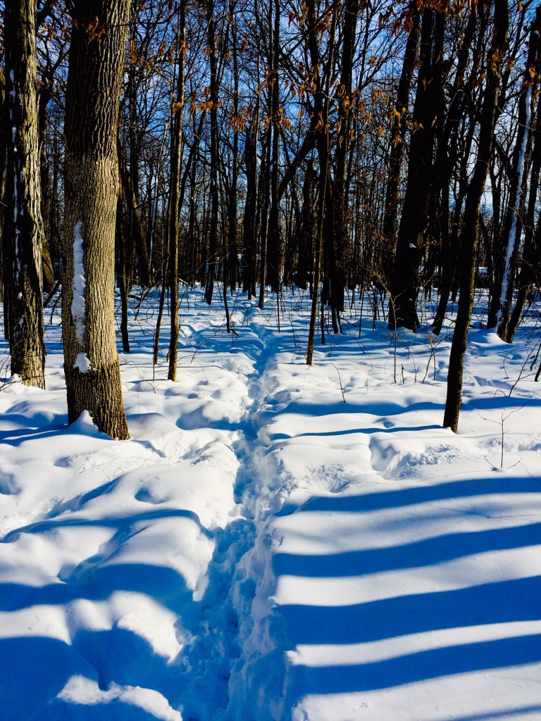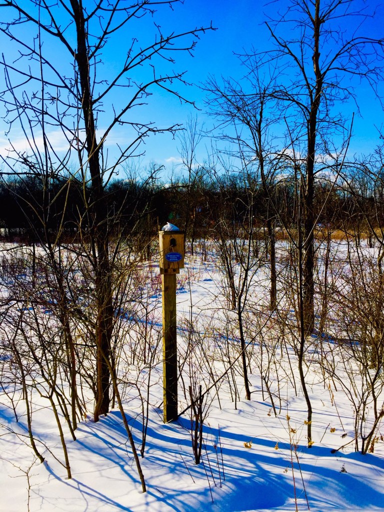 As the trails were groomed by many previous hikers, and I would have been ok without my snowshoes, but I’m glad that I wore them for the times I needed to step off the path where the snow was knee deep and occasionally closer to my hips. The park being surrounded by suburban homes means that a number of residents have the wooded park as a backdrop to their yards. The lucky souls have instant access to a forest!
