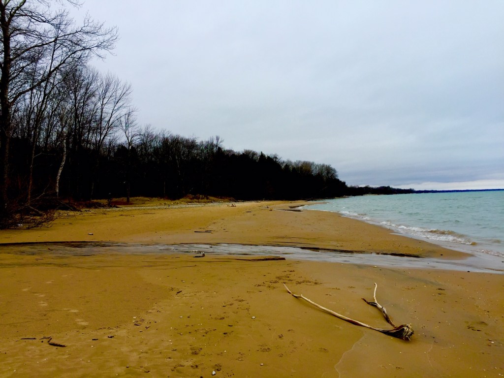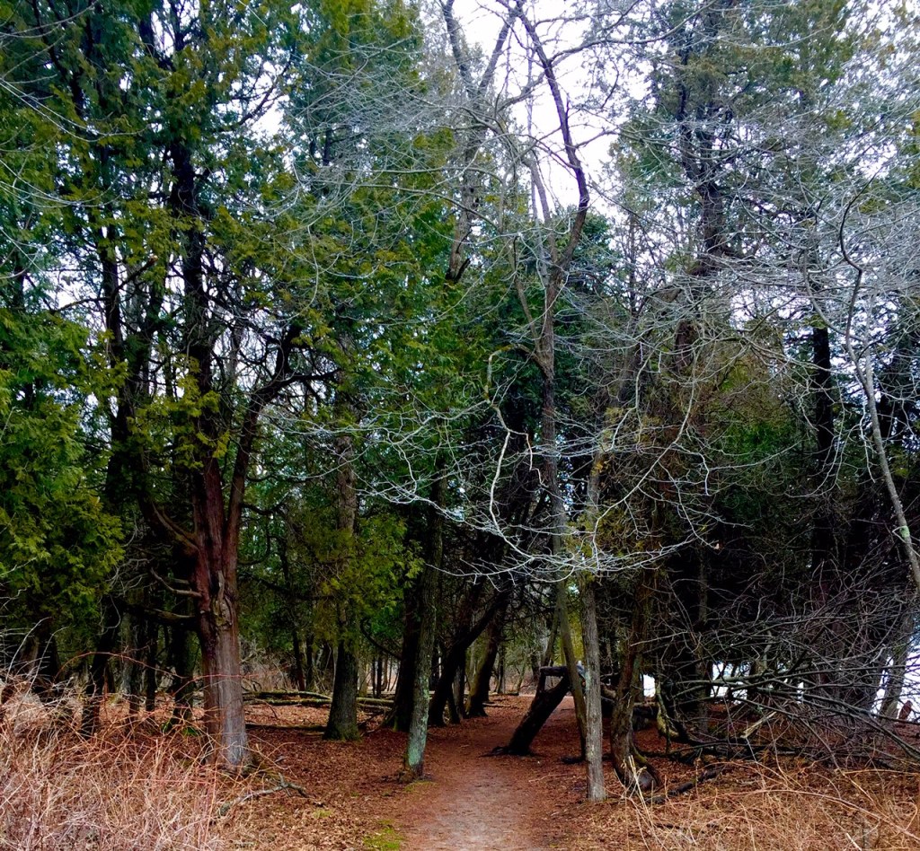 I drove up the park road and was amazed to see how far it took me into the park. I came to a large welcome center located next to the beach parking lot. All around me was old forest and trails. I parked and hike around on the shoreline trail for a while enjoying the scent of cedar trees and the fresh lake air. It was cold but it felt refreshing to be out in the quiet clean air.