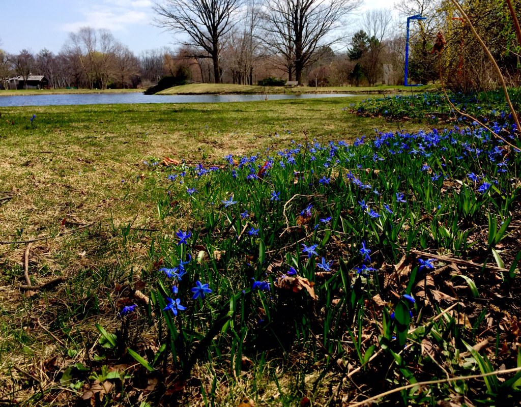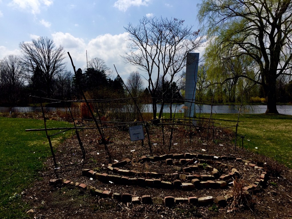 Beyond this point is an installation, sometimes closed for the season, vegetable gardens and a lovely Japanese inspired garden gently curving down a small hill and across a stream. On this day it was filled with spring flowers and new growth just beginning to pop up through the cold hard ground.