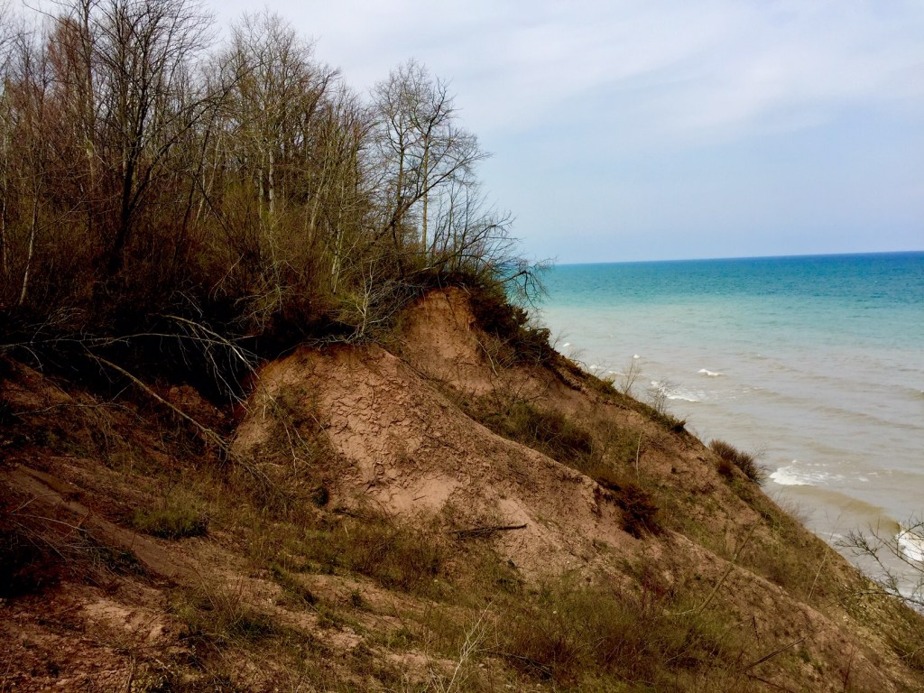 Like the rest of the Lake Michigan shoreline, these bluffs are susceptible to erosion. The sandy soil and rising lake waters are making it a danger to walk too close to the edge. There are sections that are closed to us humans and climbing down the bluffs is not only dangerous but will contribute heavily to the erosion. That being said, there are some fabulous views of the lake and distant shorelines as long as you keep your distance from the crumbling edge.